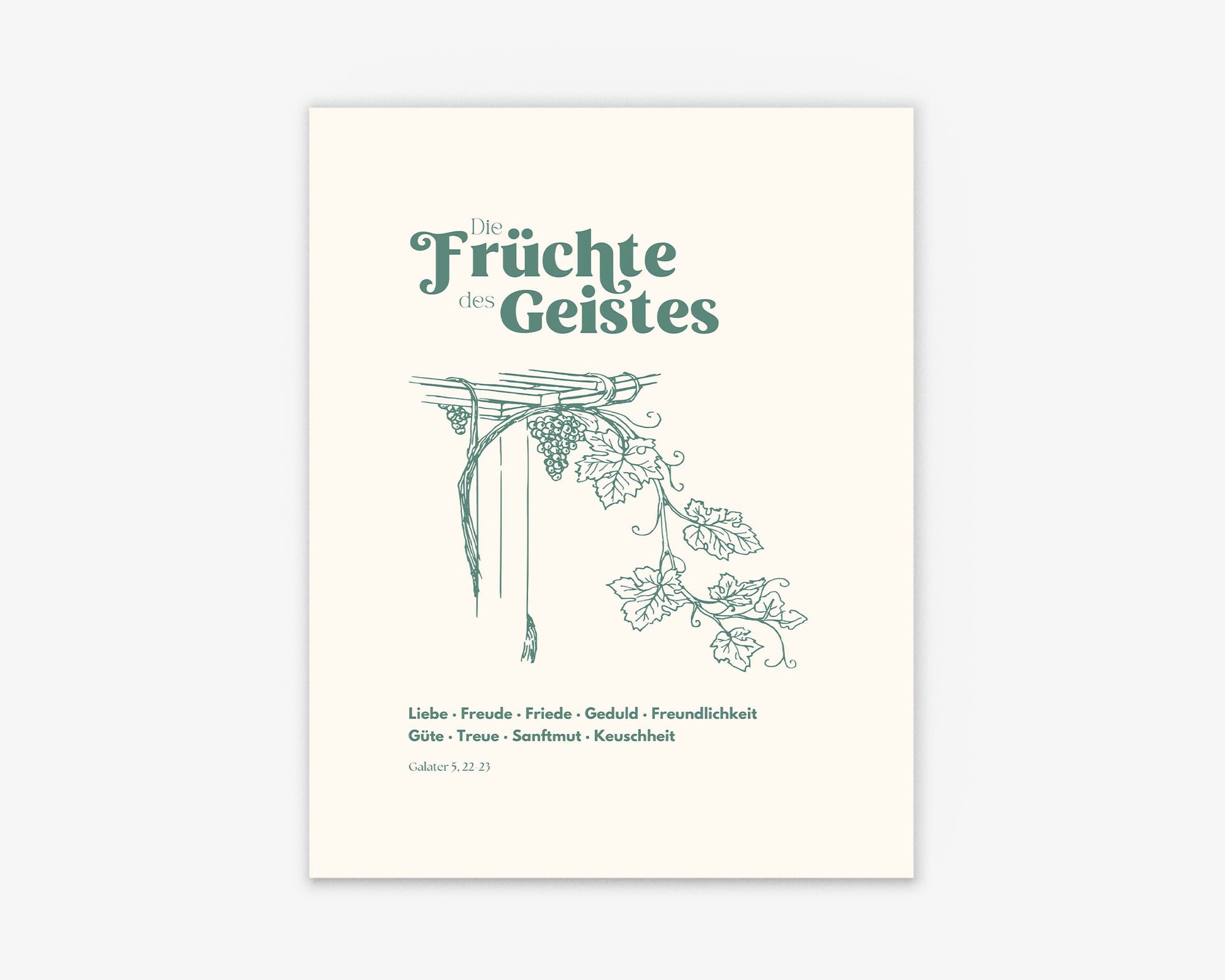 Die Frucht aber des Geistes ist Liebe, Freude, Friede, Geduld, Freundlichkeit, Güte, Treue, Sanftmut, Keuschheit. - Epheser 5, 22-23