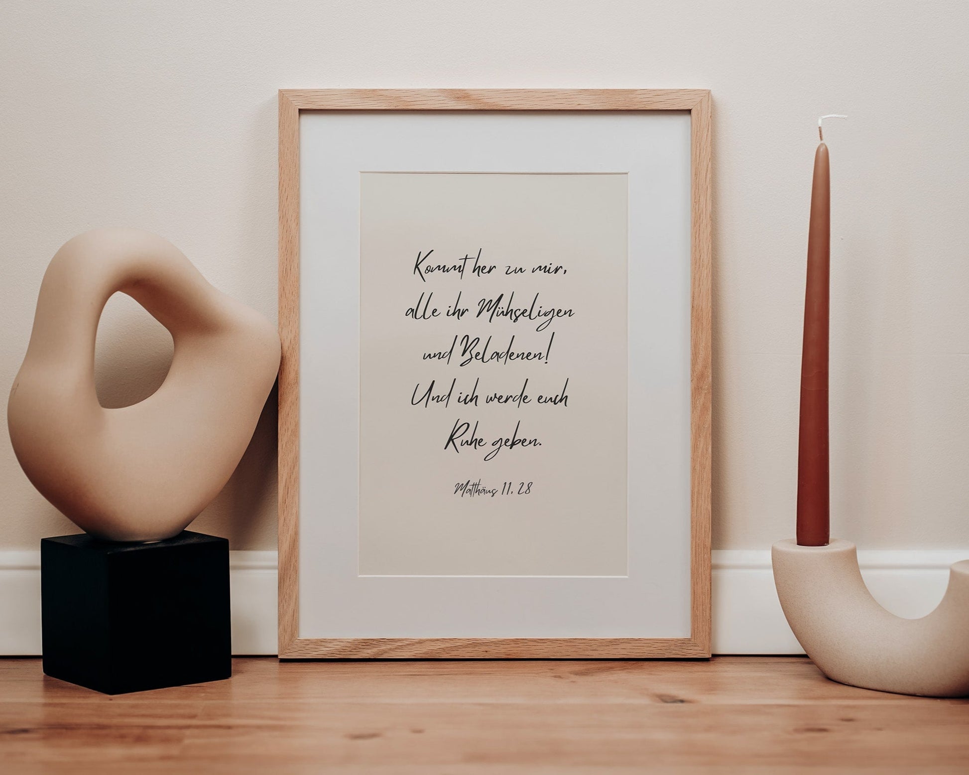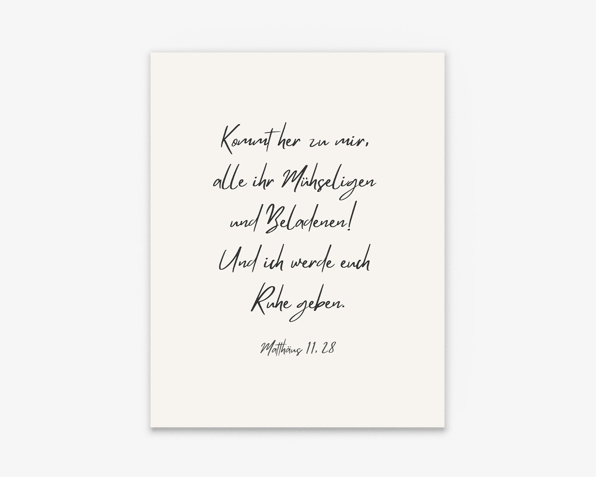 "Kommt her zu mir, alle ihr Mühseligen und Beladenen! Und ich werde euch Ruhe geben." - Matthäus 11:28